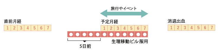 旅行や試験など大切な予定と生理予定日が被ってしまう場合、中用量ピルを使用することで生理を移動させることができます。