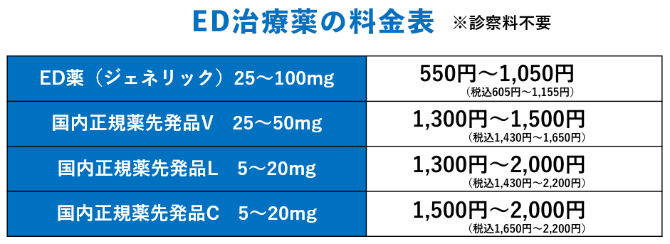 ※医療広告ガイドラインの規定により、ED治療薬の具体的な薬剤名をホームページに掲載できません。 患者様にはご不便おかけして申し訳ございませんがご了承ください。